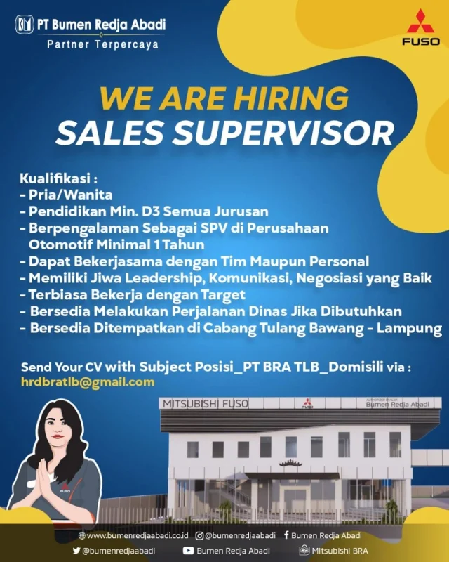 Persyaratan: Pendidikan: Minimal SMA/SMK/Sederajat Usia: Maksimal 30 Tahun Jenis Kelamin: gender. Pengalaman: Minimal 1 Tahun Pekerjaan ini membutuhkan kemampuan: Deskripsi Pekerjaan: Kualifikasi : Pendidikan minimal SMA/SMK sederajat Memiliki motor pribadi dan SIM C Berpengalaman minimal 1 tahun sebagai sales dibidang FMCG Komunikatif dan menyukai pekerjaan lapangan WILAYAH PENEMPATAN: Karawang Hari Kerja: Senin – Sabtu Jam … Baca Selengkapnya