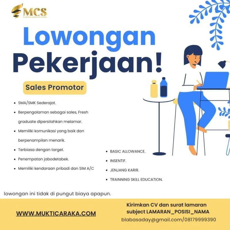Persyaratan: Pendidikan: Minimal SMA/SMK/Sederajat Usia: Maksimal Tidak ada batas usia Tahun Jenis Kelamin: gender. Pengalaman: Minimal 2 Tahun Pekerjaan ini membutuhkan kemampuan: Deskripsi Pekerjaan: Responsible for sales targets in accordance with the area Daily visit to merchant and make good relationship with PIC store Ensuring the program in its area runs well and the programs … Baca Selengkapnya