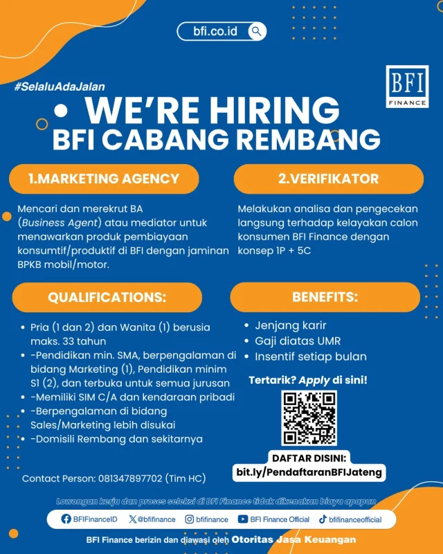 Persyaratan: Pendidikan: Minimal SMA/SMK/Sederajat Usia: Maksimal Tidak ada batas usia Tahun Jenis Kelamin: Laki-laki Pengalaman: Minimal 1 Tahun Pekerjaan ini membutuhkan kemampuan: Deskripsi Pekerjaan: Kualifikasi: Pend min SMA/Sederajat Dapat mengoperasikan komputer dan Ms Office Teliti dan berintegritas Deskripsi Pekerjaan: Menindaklanjuti order yang masuk melalui sumber order Business Channeling Melengkapi dan memastikan kelengkapan data-data konsumen dan … Baca Selengkapnya