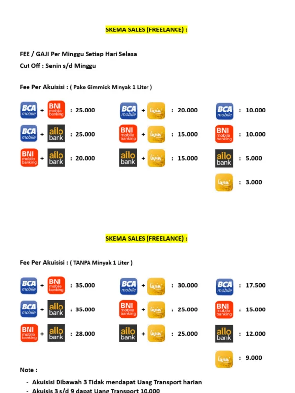 Persyaratan: Pendidikan: Minimal SMA/SMK/Sederajat Usia: Maksimal 30 Tahun Jenis Kelamin: gender. Pengalaman: Minimal 0 Tahun Pekerjaan ini membutuhkan kemampuan: Deskripsi Pekerjaan: Deskripsi Pekerjaan: Melaksanakan kunjungan nasabah Melakukan pengenalan, instalasi dan aktivasi aplikasi Membawa dan menawarkan sample produk kepada nasabah Bertanggungjawab terhadap Stokist (penerimaan, penyimpanan, pencatatan, pelaporan secara harian/periodik) Melakukan pelaporan aktivasi harian melalui aplikasi/web Memproses … Baca Selengkapnya