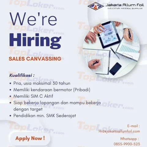 Persyaratan: Pendidikan: Minimal SMA/SMK/Sederajat Usia: Maksimal 40 Tahun Jenis Kelamin: Laki-laki Pengalaman: Minimal 1 Tahun Pekerjaan ini membutuhkan kemampuan: Deskripsi Pekerjaan: Kualifikasi: Pendidikan minimal SMA/SMK Pengalaman Sales WiFi / Internet min. 1 tahun Siap kerja mobile & lapangan Memiliki motor pribadi & SIM C aktif Paham area penjualan (perumahan, cluster, kos, UMKM, dll) Bersedia ditempatkan … Baca Selengkapnya