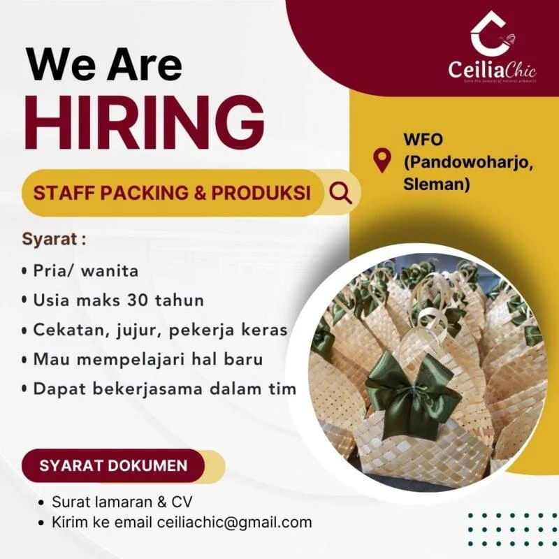 Persyaratan: Pendidikan: Minimal SMA/SMK/Sederajat Usia: Maksimal 0 Tahun Jenis Kelamin: Perempuan Pengalaman: Minimal 0 Tahun Pekerjaan ini membutuhkan kemampuan: Deskripsi Pekerjaan: – Perempuan usia maksimal 28 tahun – Belum menikah – Tidak sedang kuliah/bekerja di tempat lain – Pendidikan minimal SMA/SMK sederajat – Berpenampilan rapi, sopan, dan menarik – Mampu berkomunikasi dengan baik – Jujur, … Baca Selengkapnya