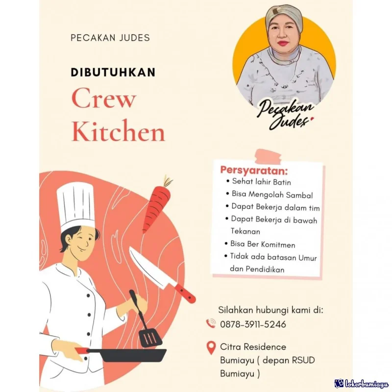 Persyaratan: Pendidikan: Minimal SMA/SMK/Sederajat Usia: Maksimal Tidak ada batas usia Tahun Jenis Kelamin: gender. Pengalaman: Minimal 1 Tahun Pekerjaan ini membutuhkan kemampuan: Deskripsi Pekerjaan: Tugas-tugas utama kitchen crew: Persiapan bahan makanan: Memotong, mencuci, menyiapkan bahan-bahan sesuai dengan resep dan standar yang telah ditentukan.  Memasak: Mengolah bahan makanan sesuai dengan resep dan instruksi chef.  Membersihkan: Menjaga kebersihan peralatan, area … Baca Selengkapnya