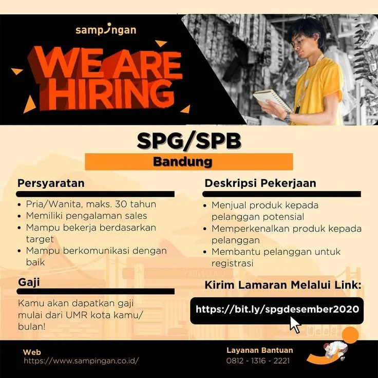 Persyaratan: Pendidikan: Minimal SMA/SMK/Sederajat Usia: Maksimal Tidak ada batas usia Tahun Jenis Kelamin: gender. Pengalaman: Minimal 1 Tahun Pekerjaan ini membutuhkan kemampuan: Deskripsi Pekerjaan: kualifikasi : Pendidikan minimal SMA / SMK Berpengalaman sebagai Sales atau Marketing atau SPG atau Promotor Komunikatif dan mampu bekerja sama dengan tim Siap kerja dengan target Jobdesc : Mempromosikan dan … Baca Selengkapnya